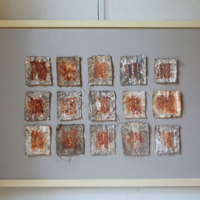 Dit werk is een compositie van 15 aquarelminiaturen, die symbool staan voor 15 orang oetans binnen de rehabilitatie in Jerora. Elk miniatuurtje van 1 orang oetan achter tralies wordt begraven in het regenwoud. De onverbiddelijke elementen van het woud bepalen of de tralies weggevaagd worden of voorgoed blijven.