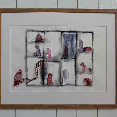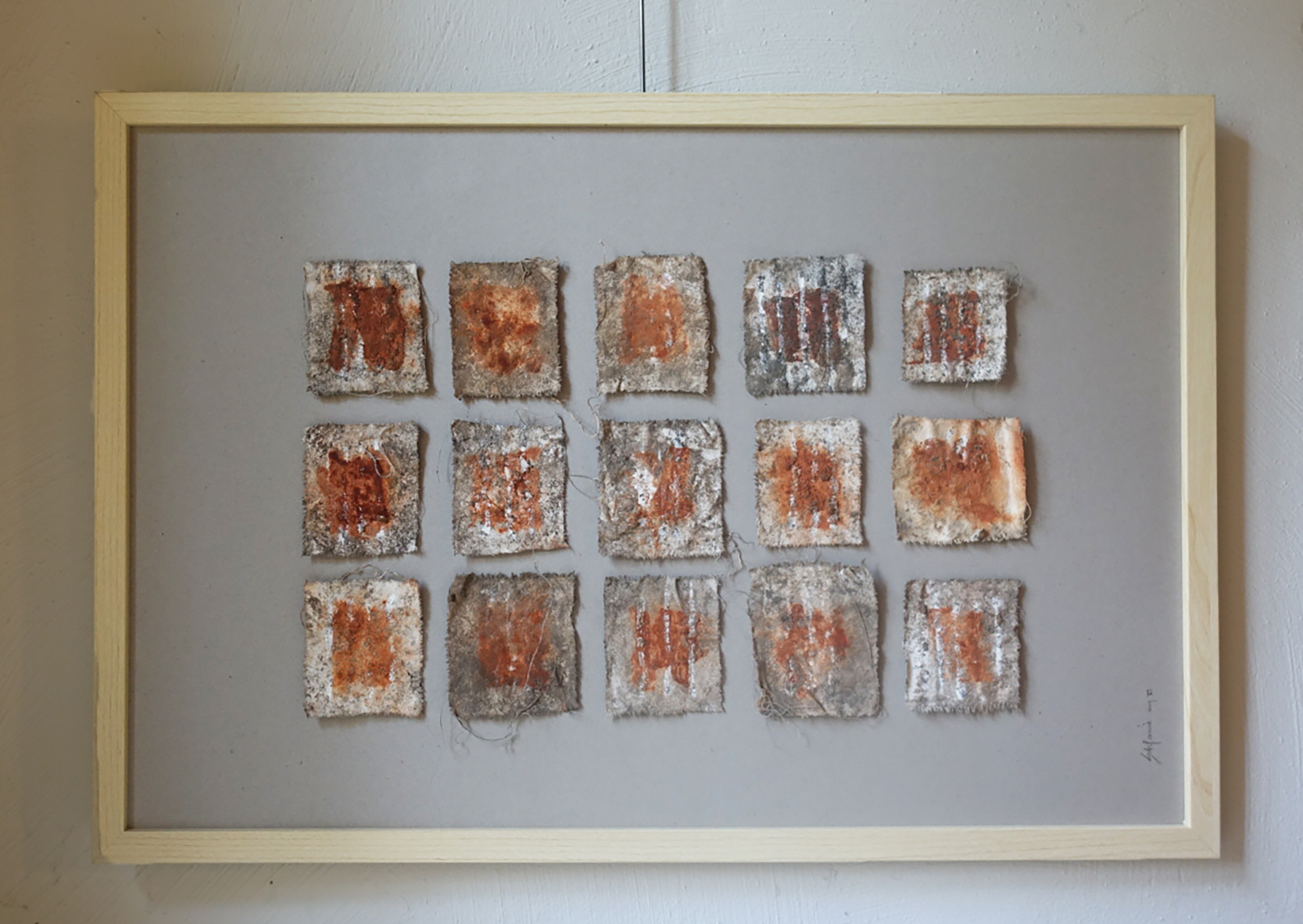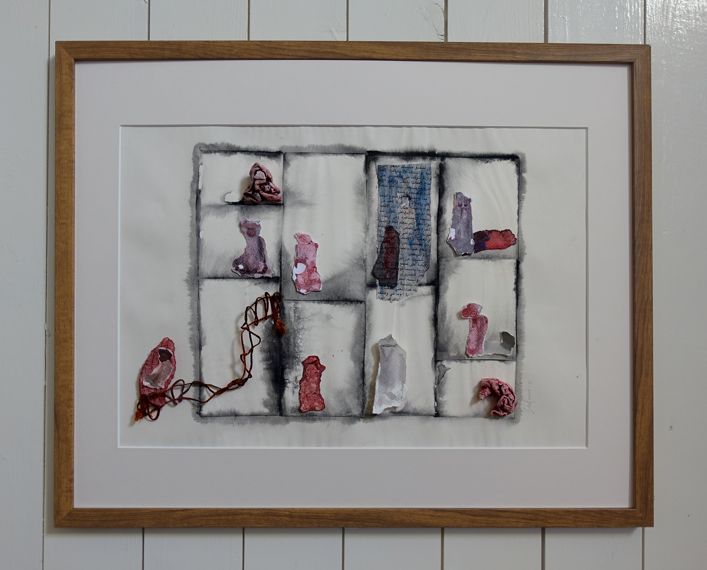 Dit werk is een compositie van 15 aquarelminiaturen, die symbool staan voor 15 orang oetans binnen de rehabilitatie in Jerora. Elk miniatuurtje van 1 orang oetan achter tralies wordt begraven in het regenwoud. De onverbiddelijke elementen van het woud bepalen of de tralies weggevaagd worden of voorgoed blijven.